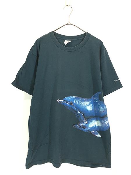 古着 90s USA製 イルカ アニマル 巻き プリント Tシャツ XL 古着