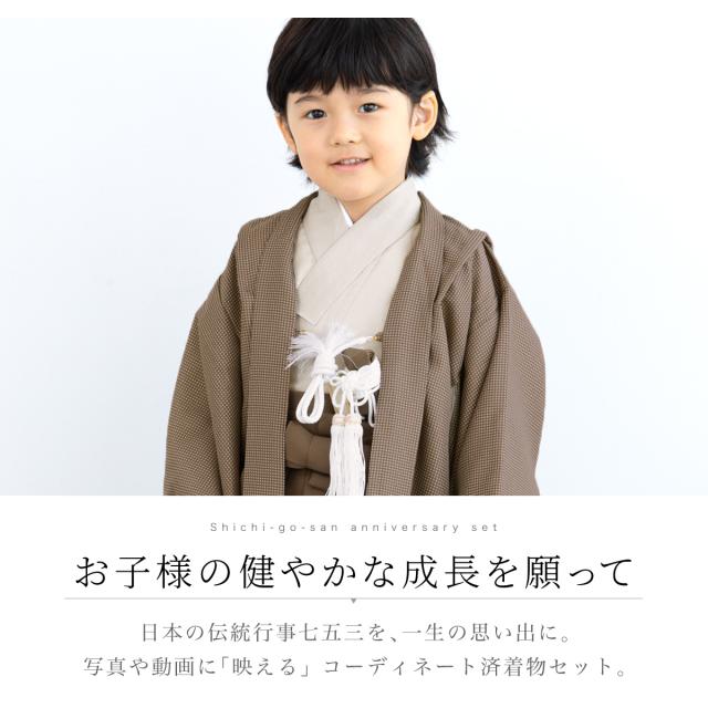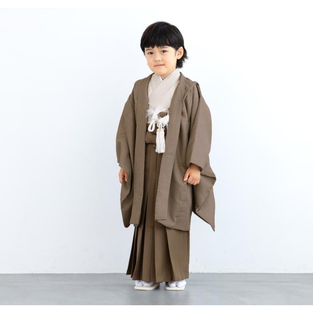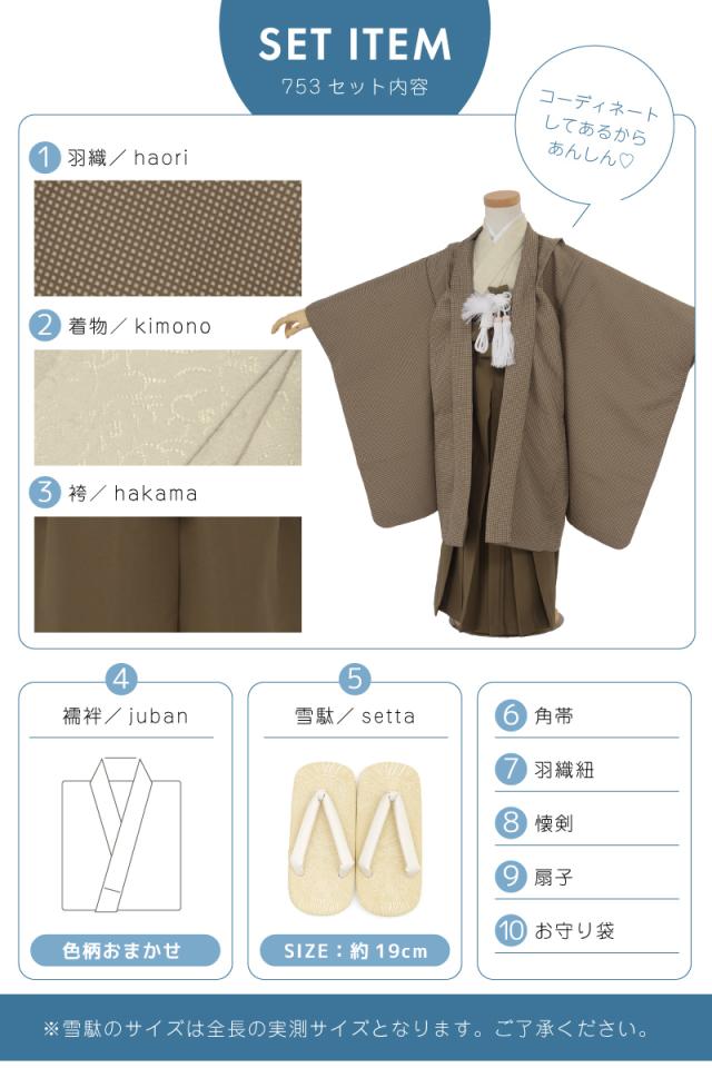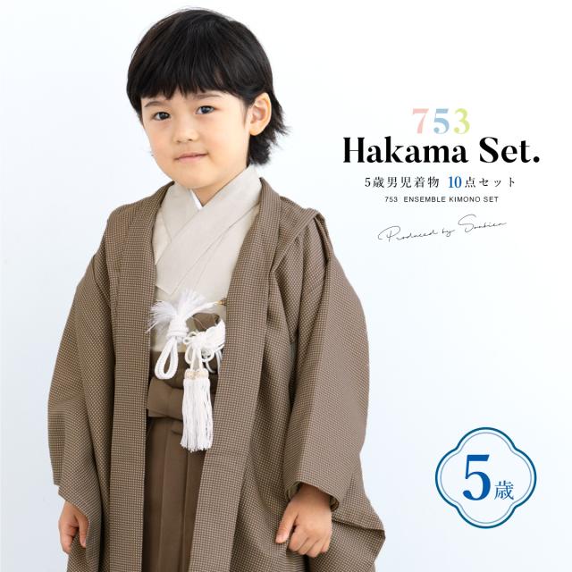 七五三 着物 5歳 販売 五歳 袴セット 10点セット 羽織 着物 半襦袢 袴帯 羽織紐 扇子 懐剣 お守り袋 雪駄 セット 男の子 ブラウン 茶 和服 男児 送料無料