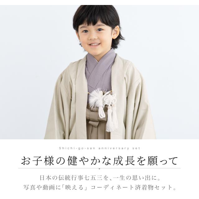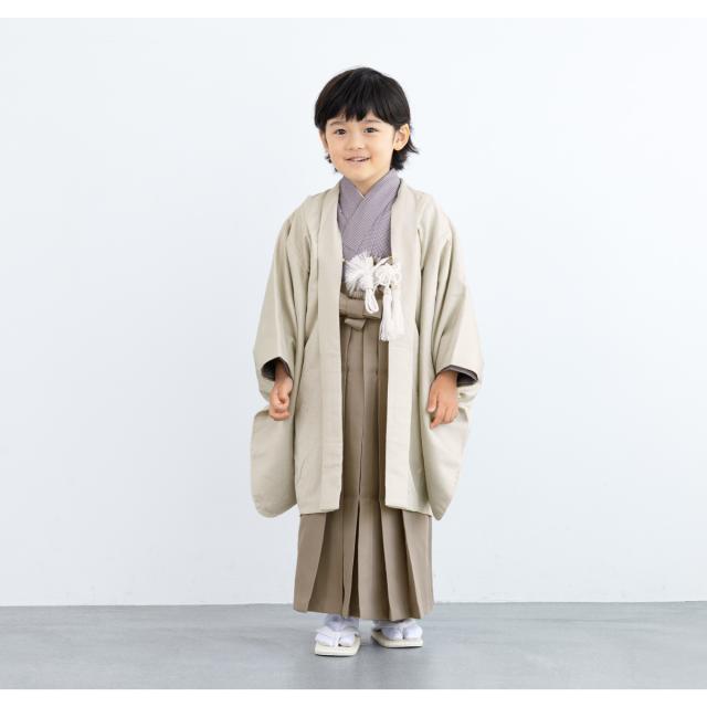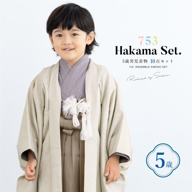 七五三 着物 5歳 販売 五歳 袴セット 10点セット 羽織 着物 半襦袢 袴帯 羽織紐 扇子 懐剣 お守り袋 雪駄 セット 男の子 アイボリー ブラウン 和服 男児 送料無料