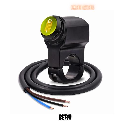 商品仕様: -最大電流:10A、定格電圧:12V -発光色:イエロー -配線長さ:約19cm -材質:アルミニウム合金 -適用:ハンドル径約22mmのバイクや自転車などの汎用品