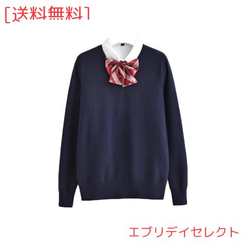 [Blostirno] スクールセーター 女子 Vネック セーター 制服 学生 無地 綿 女子高校生 ネイビー(JP0073NY-L)