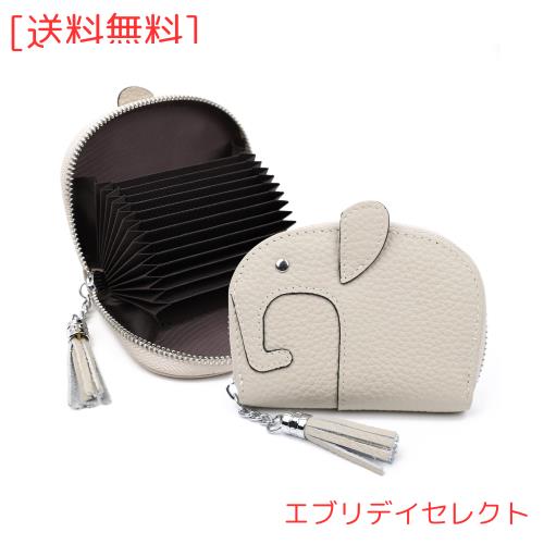[imeetu] カードケース クレジットカードケース じゃばら 小銭入れ付き 可愛いゾウ 象 薄型 スリム 軽量 大容量 12枚収納 牛本革 キャラ