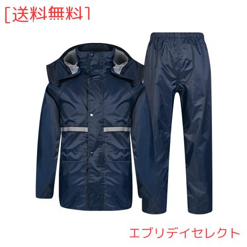 [Fosys] レインウェア 上下セット レインスーツ レインコート メンズ レディース 防水 撥水 アウトドア 自転車 通勤 通学 (2XL, ネイビー