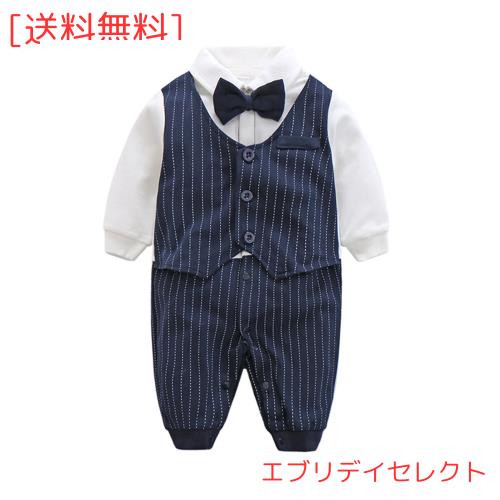 ◆商品名:[Fairy Baby] エルフ ベビー ベビーフォーマル 赤ちゃん セレモニー ロンパース 男の子 結婚式服 お食い初め お宮参り 66cm 紺色 ストラ