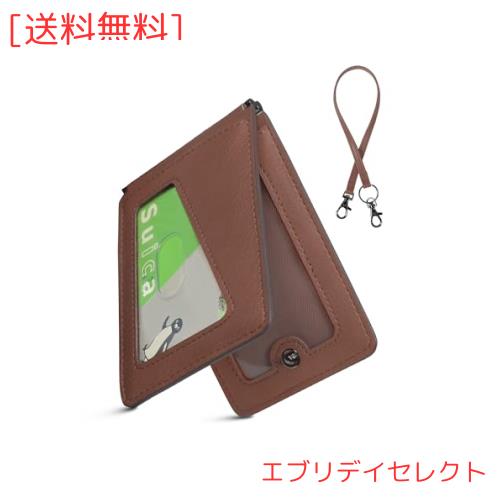 定期入れ メンズ パスケース 5枚収納 本革Dカン 薄型 バタフライ ICカード2枚使用可能 ストラップ付き 通勤 通学 (コーヒー)