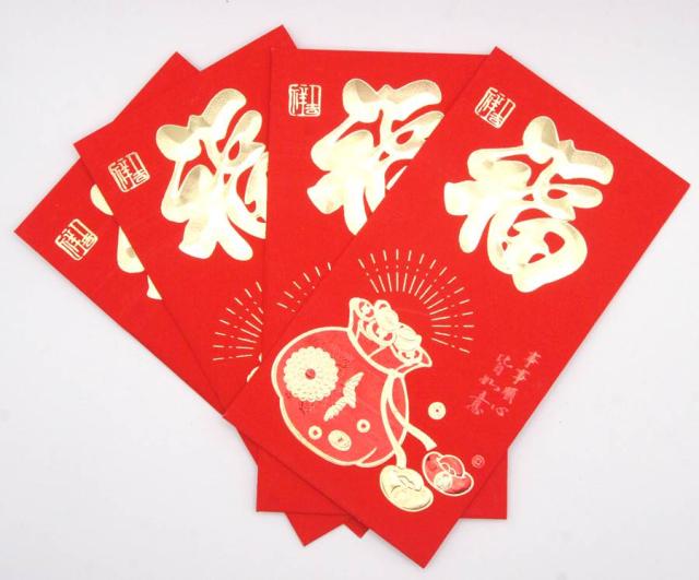 利是袋(りーしーとい)とは、紅包ともいわれ、中国で使われるご祝儀袋。日本ではポチ袋と呼ばれたりします。お年玉だけでなく、結婚式やおめでたい宴会のとき、また子供にお小遣いをあげるさいなどに使われます。本商品はお目出度いモチーフの利是袋のお徳用セットです。お年玉のほかちょとしたご祝儀にも使用できます。