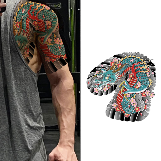タトゥーシール メンズ 和柄 刺青シール 龍 ボディーシール 長持ち 入れ墨シール 和彫り 大判 リアル タトゥー tattoo アートステッカー ヘナタトゥー