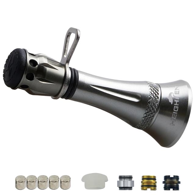 【製品仕様】本体長さ: 48mm、自重: 7g、材質:70航空アルミ、耐腐食性能を持つ、海釣りもご安心 【付属品】1個のアブ用ソケット、1個のシマノ用ソケット、1個のダイワ用ソケット、1個の夜光キャップ、5個の重量ブロック(バランス調整用、1g/pc)2個のピーススプリング(1xLong、1xShort)、3個の予備用ゴム製Oリング。