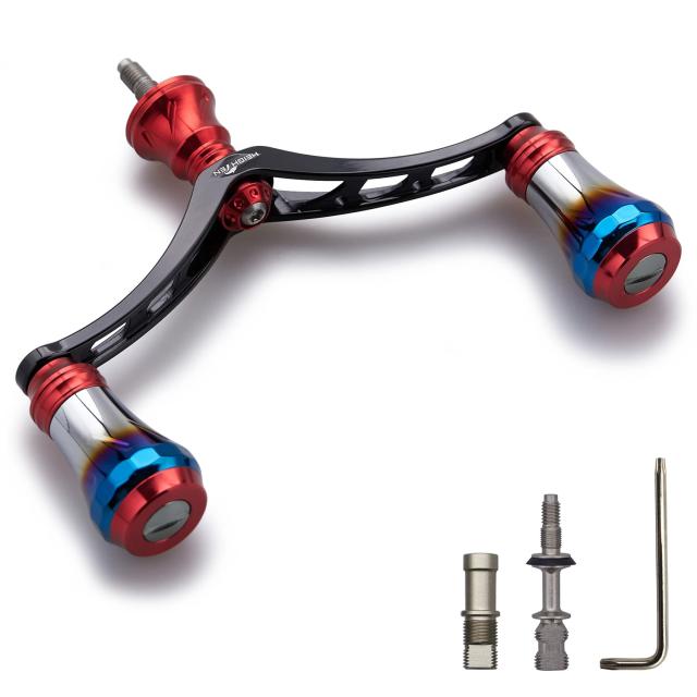 レッド(ノブ)&ブラック(ハンドル)_98mm HEIGHTEN 改良 98mm リール ハンドル 6色 70航空アルミ製 シマノ ダイワ 通用 スピニングリール 用 Arch Aurora (レッド&ブラック, 98mm) (173)