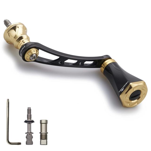 ブラック/ゴールド(ノブ)&ブラック(ハンドル) HEIGHTEN 56mm リール ハンドル 23mmノブ搭載 シマノ(SHIMANO) ダイワ(DAIWA) 通用 スピニングリール 用 Tornado Series (ブラック/ゴールド) (396)