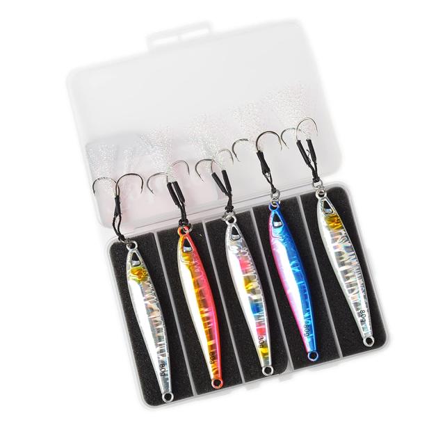 80g セット Tolure ジグ セット 4色 80g 3Dプリンタの目 レーザフォイルペーパー 夜光 メタルジグ 青物 真鯛 ブリ ハタ シーバス 根魚 アジ 海釣り フック付き 釣り ジグ 5個/セット