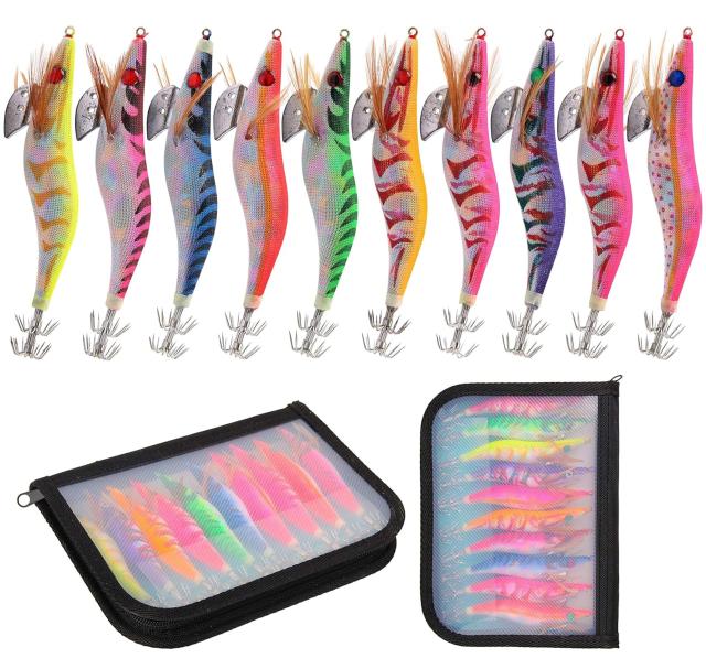 10本2.5号餌木+エギ入れケース エギ イカ釣り エギング釣り エギセット 夜光エギルアー 2.5号 針先蓄光 9カラー 10本セット ボンバーフック 収納ケース付き 強化版