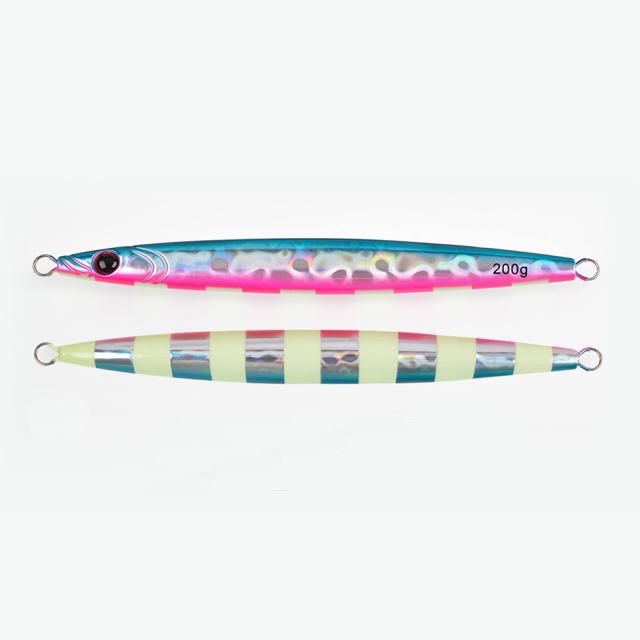 200g_青とピンク Tolure メタルジグ 200g 急速に沈下 夜光 3Dプリンタの目 レーザ紙コーティング ジギング 海釣り サバ 真鯛 鮪 カツオ タラ サワラ アジ 船釣り 夜光 釣りジグ 1個/パック(青とピンク)