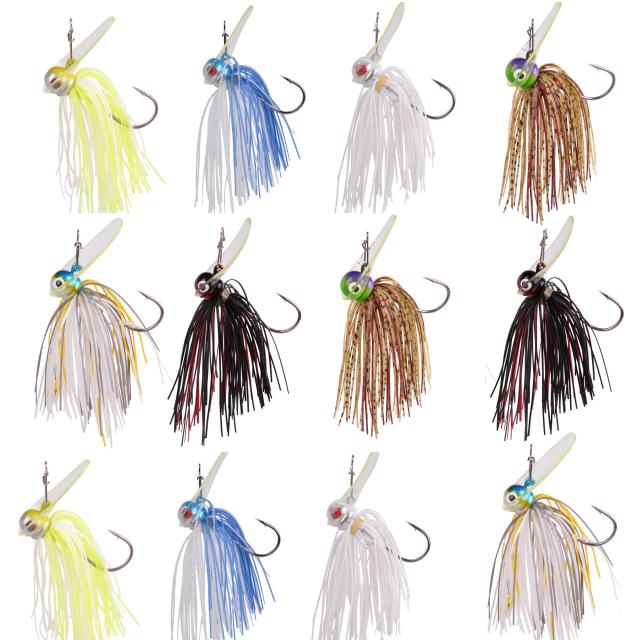 説明 数量:12本 重量:14g、18g 素材:高炭素鋼フック、ラバースカートルアー 色:混合色 モデル:チャターベイトジグヘッドセット