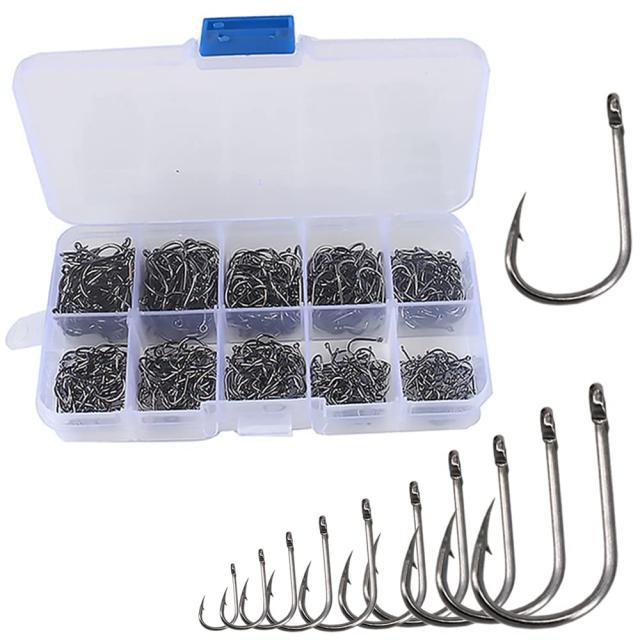 釣りフック 釣り針 フック 高炭素鋼 高強度 耐腐食 10種サイズ 03-12 管付き 鋭いフックポ イント 環つき 交換用 アシストフック フィッシュフック 海水 淡水 釣り フィッシング道具 400個セット 収納ボックス付き