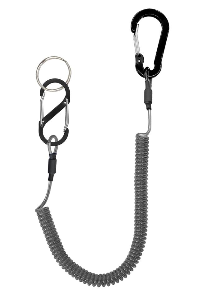 一端はカラビナ、もう一端はS型カラビナとリングの設計で、もっと便利に、もっと広い範囲で、ニーズに応じてご利用いただけます。