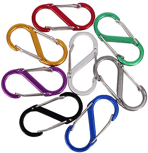 カラビナ フック8字 S字型 小 アルミ合金 超軽量 キーホルダー 多機能 生活雑貨 アウトドア キャンプ用 キャンプ釣りハイキング旅行とスポーツの屋外用 Sサイズ 8個入り 色ランダム