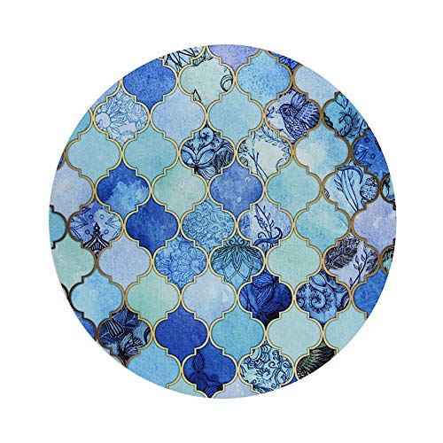ブルー マウスパッド カラフルなレインボーモロッコのスタイル 丸型 おしゃれ かわいい 柔軟 ゴム製裏面 ゲーミングマウスマット 円形 滑り止め 耐久性が良い おもしろい 水彩 プリントパターン (ブルーパステル)