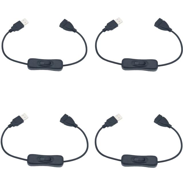 USB スイッチ, CESFONJER 4 個 30cm USB 延長ケーブル オン/オフスイッチ付き, 小さなデスクランプ/ファンのためにフィットし、LEDライトを