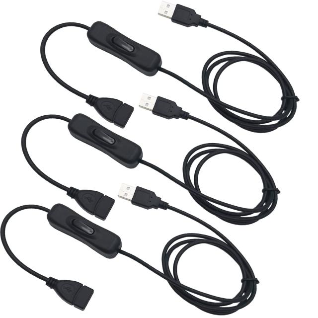 CESFONJER 3個 USBスイッチケーブル, USB A オス メス 延長ケーブル 1m USB スイッチ付き, 駆動レコーダー用、LEDデスクランプ、USBファン、LEDストリップ