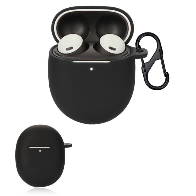 For Pixel Buds Pro ケース シリコン 専用 収納カバー 全面保護 充電便利 カラビナ 紛失防止 滑り止め AUDASO 軽量 キズ防止 スリム 薄型 旅行 耐衝撃 防塵 Pixel Buds Pro 用保護ケース-ブラック