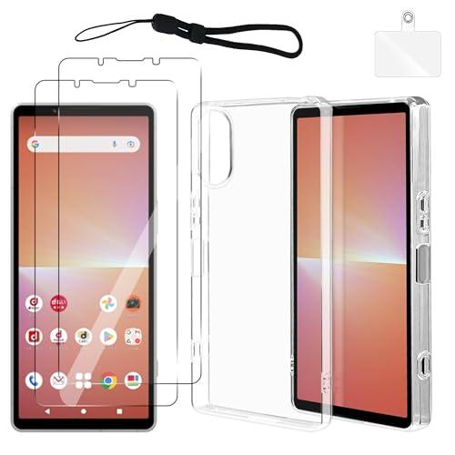 【2枚セット Xperia 5 V SO-53D SOG12 用の ガラス フィルム + ケース カバー クリア】 液晶保護 フィルム 硬度9H 日本製素材旭硝子製 耐衝撃 + 全透明 カバー TPU 耐衝撃 薄型 Xperia 5 V