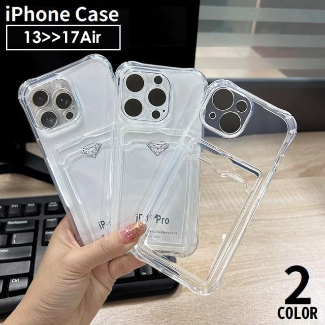 iPhone用ケース iPhone用カバー スマホケース カード収納 耐衝撃 カメラ保護 背面保護 クリア 透明 ソフト シンプ