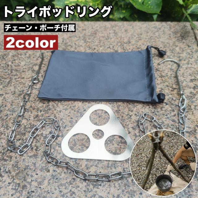 トライポッドリング チェーン ポーチ 3点セット 三脚作り 自作 焚き火台 フック付き トライポッド 枝木 簡単 リング 吊り下