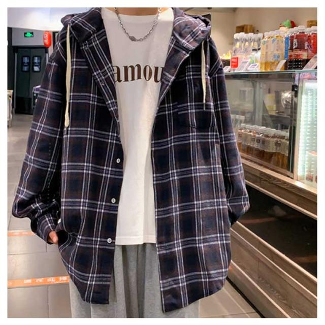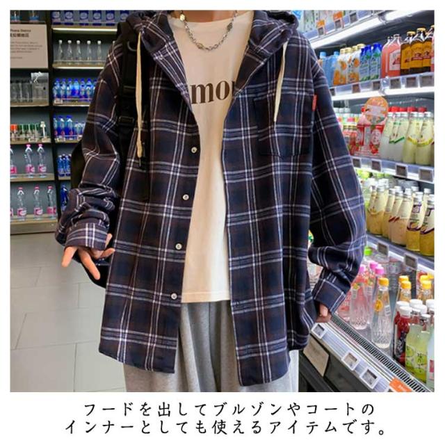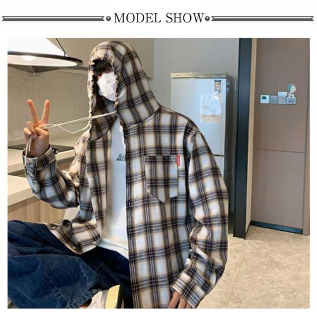 チェック シャツ パーカー メンズ 長袖 ジャケット 春秋 フード付 アウター 大きいサイズ ゆったり アメカジ オーバーサイズ シャツジャケット カジュアル チェックシャツ チェック 40代
