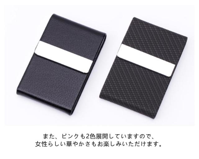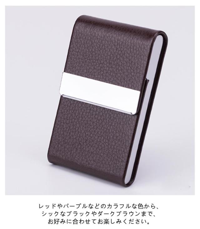 | 名刺が折れない ステンレスケース名刺入れ 【4個セット】 大人可愛いオシャレな名刺入れが新登場!! スタイリッシュで頼れるステンレス製のケースは、角が折れない造りで、いつでも大切な名刺を美しい状態でお持ちいただけます。 マグネットボタンでの開け閉めは、簡単で便利!忙しい毎日でもストレスなくお使いいただけます。 縦型のデザインは手になじみ、持ち運びもラクラク。一般的な名刺サイズに最大20枚の収納が可能なので、たくさんの名刺もスマートに整理できます。 豊富なカラーバリエーションからお気に入りの色をお選びいただけます。レッドやパープルなどのカラフルな色から、シックなブラックやダークブラウンまで、お好みに合わせてお楽しみください。また、ピンクも2色展開していますので、女性らしい華やかさもお楽しみいただけます。 <お勧めポイント> ●名刺を約20枚収納ゆとりの収納力 ●マグネット吸着でスムーズに開閉 ●ベロア生地の裏張りで名刺を優しく保護 ●PUレザー・ステンレスのハイブリッド構造 | |