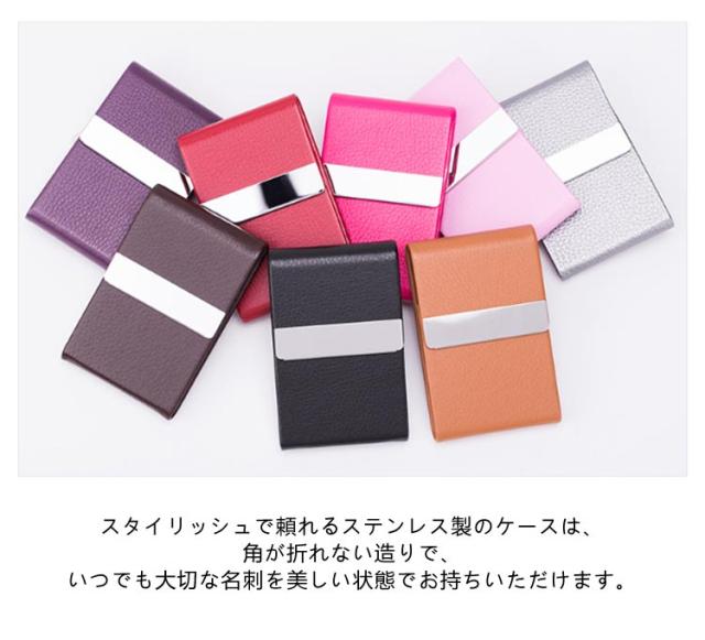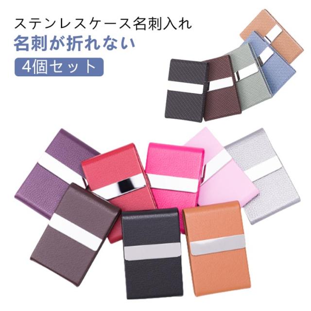 レディース 【4個セット】 名刺ケース メンズ 名刺が折れない 【4個セット】 おしゃれ 可愛い ステンレス 名刺入れ 革 縦向き 名刺ホルダー ケース カードケース 名刺 カードホルダー ビジネスカードケース マグネット 吸着