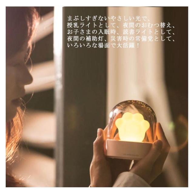| 可愛い猫爪をデザインしたやさしいナイトライトは、部屋を可愛く装飾! 暗闇の中で小さなスイッチを探すことなく、手探りでも簡単にスイッチを入れることができます。 コードレスでどこでも使うことができ、最も暗いライトで約72時間ご使用が可能です。PC、ACアダプター、などで簡単に充電ができます。 調光機能のすべてがワンタッチででき、直感的な操作が可能です。長押しでタッチすることで癒し音楽再生。柔らかな光と温かみのある催眠音楽は、赤ちゃんが安心して眠り、元気よく目覚めるのに役立ちます。 まぶしすぎないやさしい光で、授乳ライトとして、夜間のおむつ替え、お子さまの入眠時、読書ライトとして、夜間の補助灯、災害時の常備党として、いろいろな場面で大活躍! | |