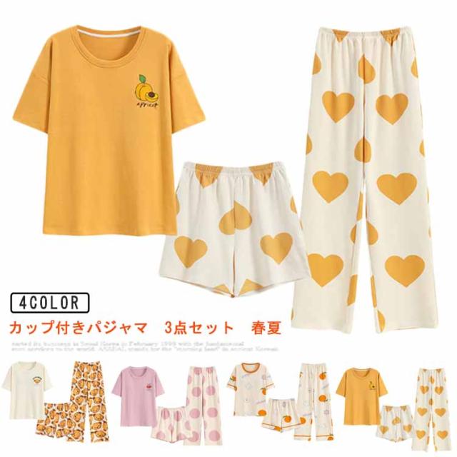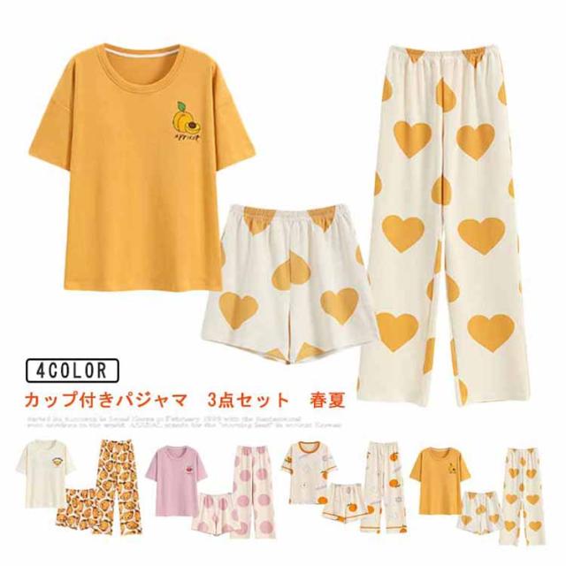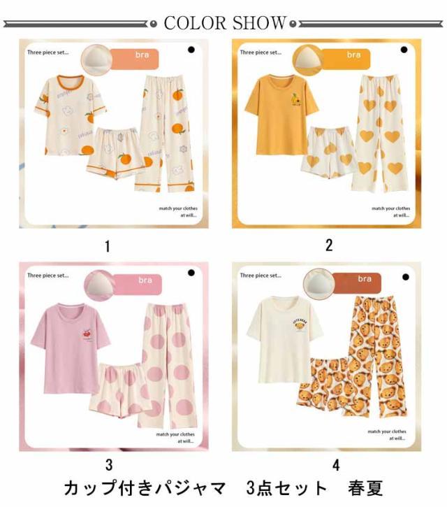| カップ付きパジャマ 3点セット 春夏 カップ付きtシャツ・ショートパンツ・ロングパンツが一緒になった新しいルームウェアです。 涼しい薄手素材でカップ付きでブラの窮屈感から解放!急な来客や外泊時でもバストトップを気にせず過ごせます。 汗をかいてもすぐ乾く、やわらかい肌ざわりも快適な寝心地も実現します。 リラックス感たっぷりのシルエットでパジャマ、寝巻きだけではなく、お宅でのリラックスタイムや旅行先でのくつろぎ用の部屋着、ルームウェアとしても活躍してくれます。 | |