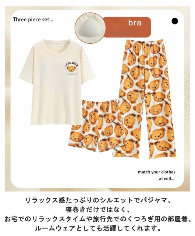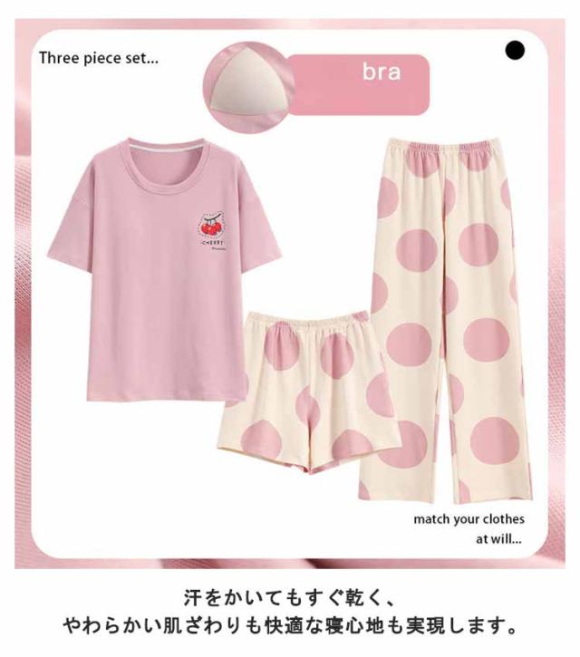 パジャマ 3点セット 半袖 レディース 上下セット ショートパンツ 3点セット 部屋着 春夏 ホテル ルームウェア セットアップ 薄手 大きいサイズ ナイトウェア 可愛い ゆったり 旅行 長ズボン 半袖 ロングパンツ 寝巻き 柔らか 通気性