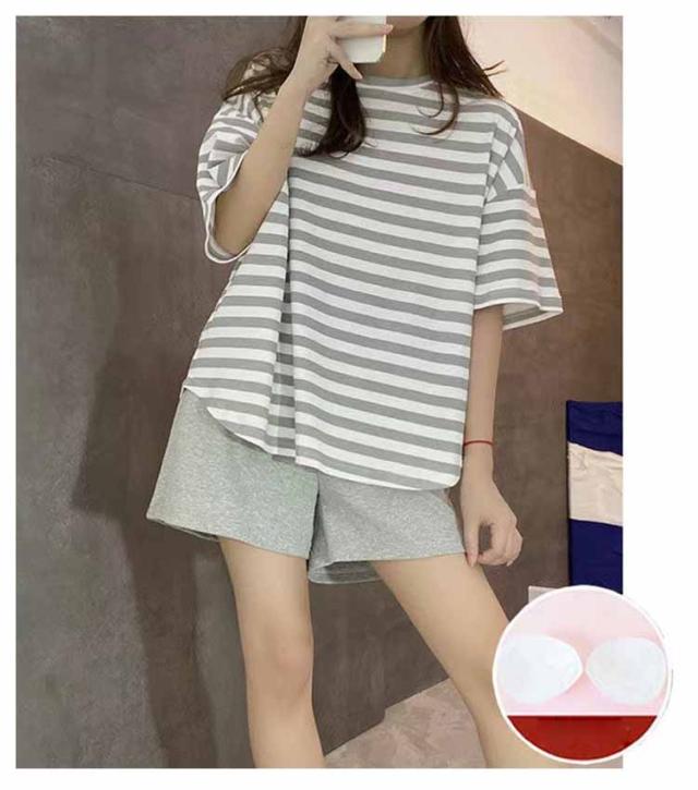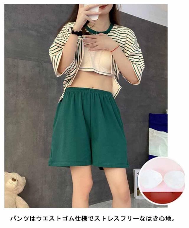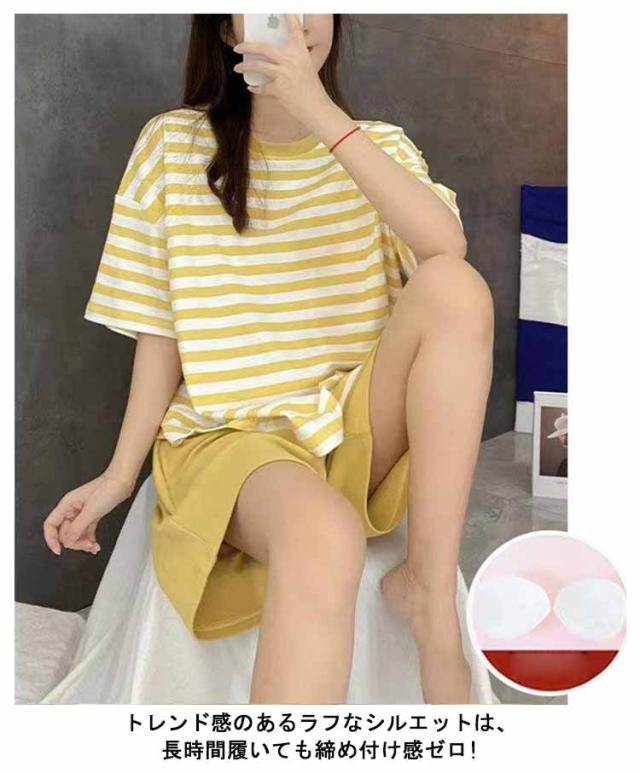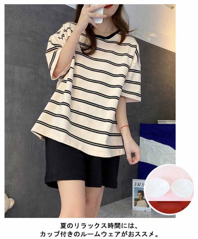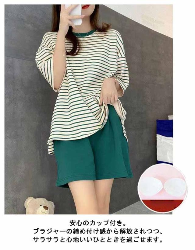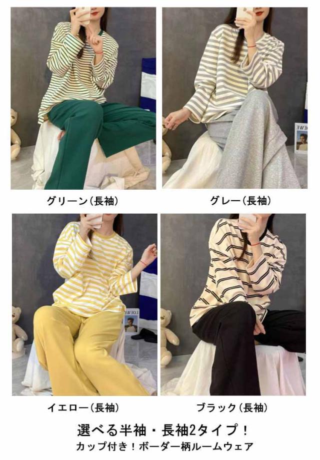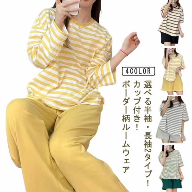 ルームウェア ボーダー柄 パジャマ カップ付き Tシャツ 上下セット レディース 半袖・長袖 カップ付き ショートパンツ ロングパンツ 2点セット ナイトウェア リラックス 寝間着 寝巻き 可愛い 通気性 柔らかい 女性用 婦人用 母の日 春夏