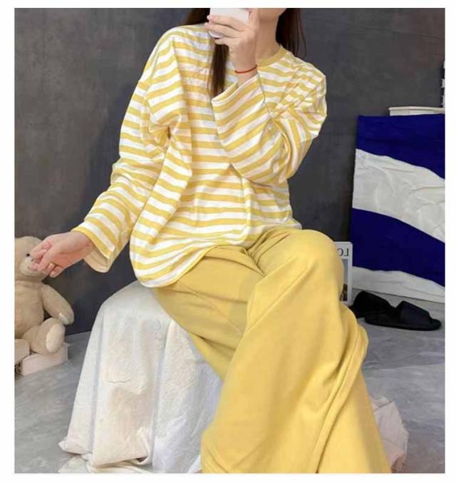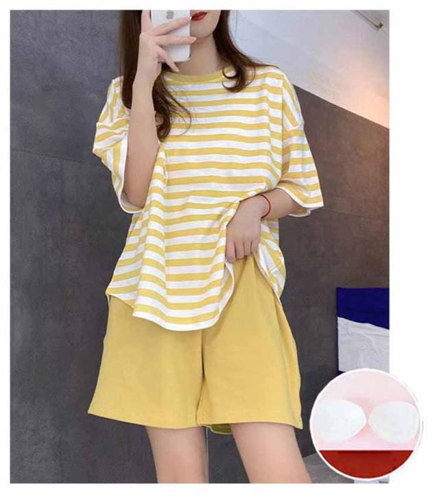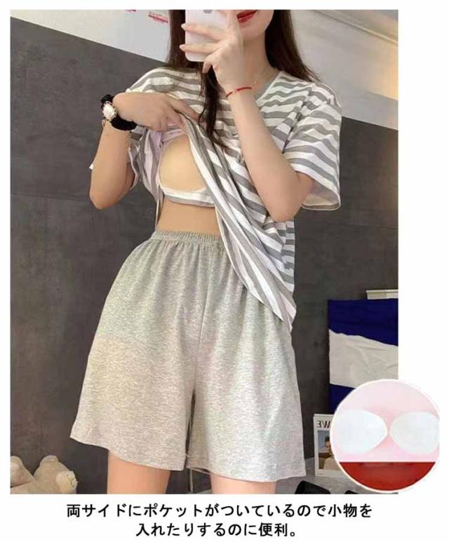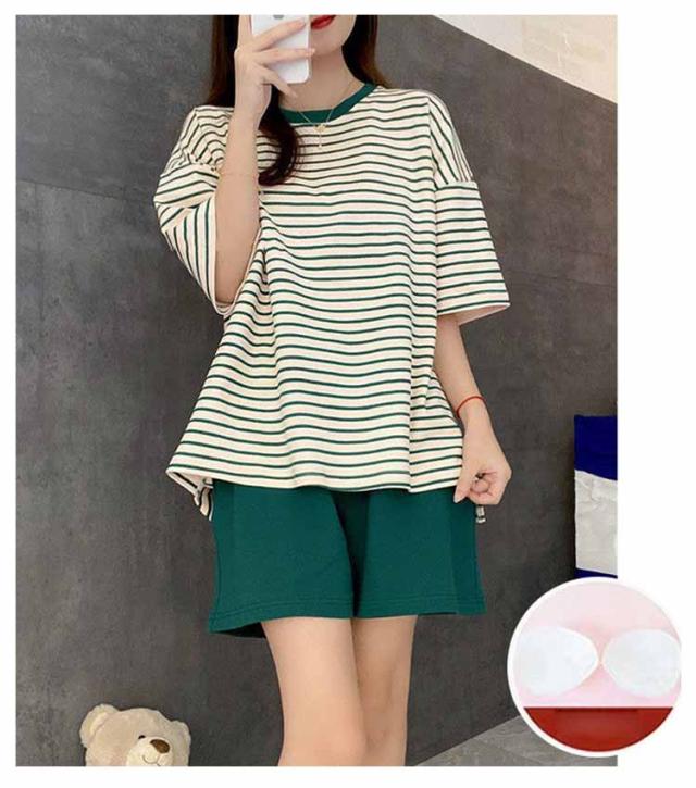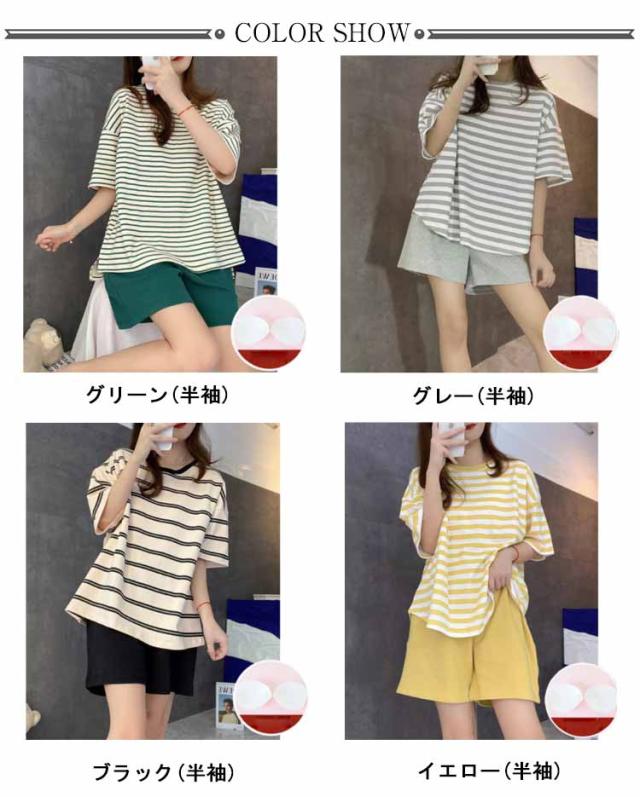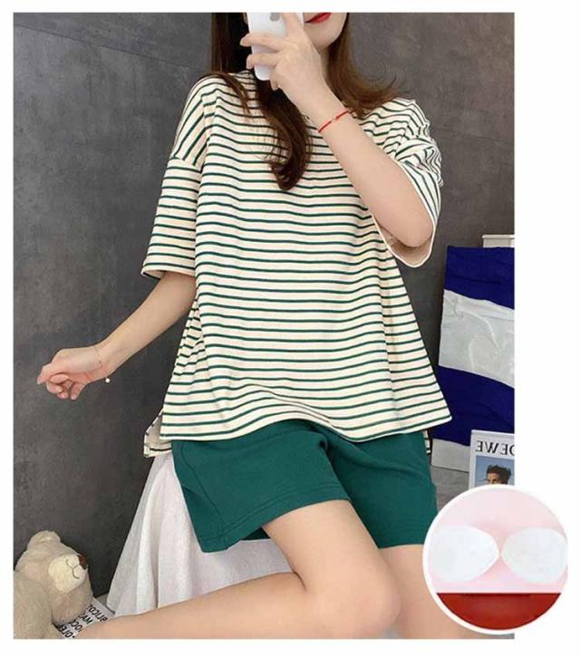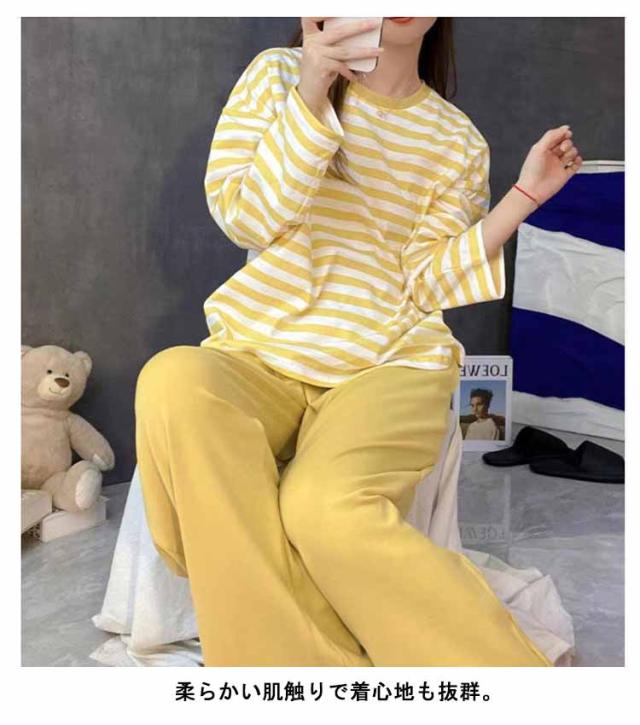 ルームウェア ボーダー柄 パジャマ カップ付き Tシャツ 上下セット レディース 半袖・長袖 カップ付き ショートパンツ ロングパンツ 2点セット ナイトウェア リラックス 寝間着 寝巻き 可愛い 通気性 柔らかい 女性用 婦人用 母の日 春夏