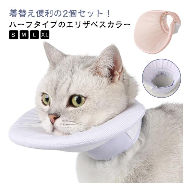 猫 猫用 簡単装着 綿 ハーフエリザベスカラー ハーフタイプ エリザベスカラー 犬用 サイズ調整 ストレス軽減 ソフト ハーフ エリザベスカラー ペット 術後ケア 傷舐め防止 引っ掻き防止 傷口保護 エリザベスカラー 白 ホワイト ピンク