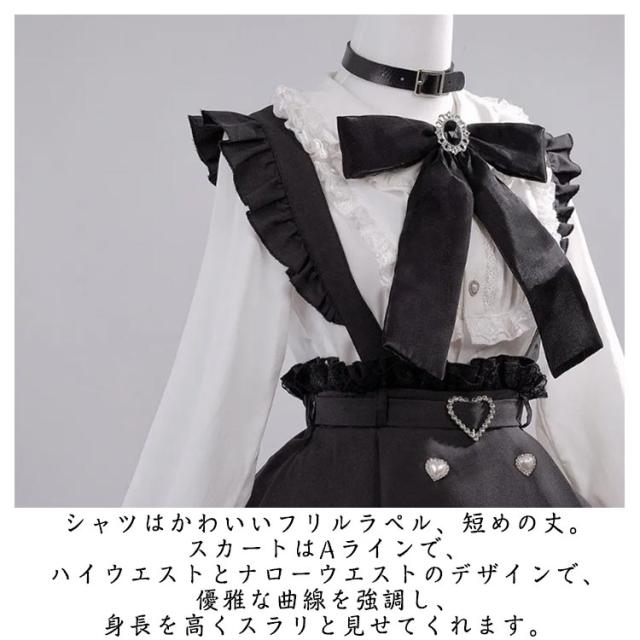 | 地雷系ファッション好きの方はぜひ!可愛いシャツとつりスカートの2点セット 量産型&地雷系デザイン、ミニ丈、超可愛い! 春、夏、秋に適した長袖と半袖のスタイルをご用意しています。 シャツはかわいいフリルラペル、短めの丈。 スカートはAラインで、ハイウエストとナローウエストのデザインで、優雅な曲線を強調し、身長を高くスラリと見せてくれます。パニエと合わせるとさらに効果的です。 生地は柔らかく繊細で、快適で、伸縮性、通気性に優れており、快適に着用できます。縫製がしっかりしていて、色堅牢度も高いです。スカートは短めなのでペチコート・ペチパンツと合わせて着るのがおすすめです。 地雷系、量産型、可愛い、お姫様、学院風、可愛い女の子向き。レッグソックス、ブーツと合わせると全体のコーディネートの主役になります! 通勤、学校、オフィス、デート、学園祭、文化祭、お出かけなどに最適です。 | |