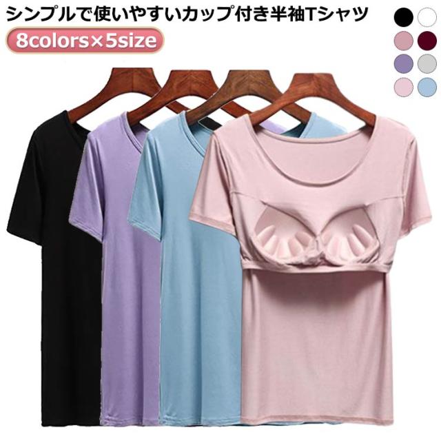 | 8colors×5size シンプルで使いやすいカップ付き半袖Tシャツ 締め付け感なしでリラックスしたい休日などにぴったり | |
