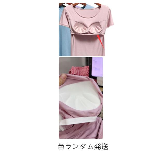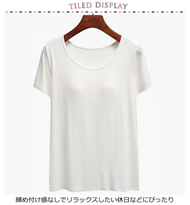 Uネック 大きいサイズ Tシャツ 無地 tシャツ カップ付きTシャツ 半袖 締め付けない レディース ナイトウェア パット付き 下着 Tシャツブラ インナー ルームウェア ブラトップ ナイトブラ 部屋着 トップス おしゃれ 夏 肌着 カジュアル