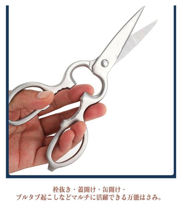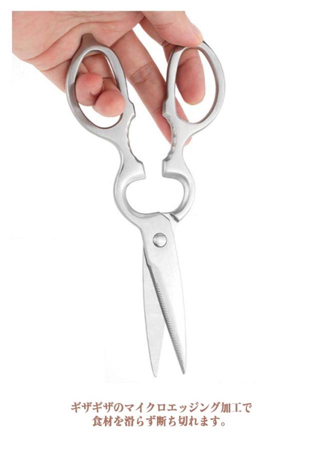 | 分解して洗えるキッチンバサミ。 ギザギザのマイクロエッジング加工で食材を滑らず断ち切れます。 オールステンレスかつ疲れにくい軽量設計。 スタイリッシュなデザインも嬉しい。 栓抜き・蓋開け・缶開け・プルタブ起こしなどマルチに活躍できる万能はさみ。 また分解して洗えるので衛生面も安心。 素材 ステンレス サイズ 全長25cm刃渡り7.5cm/重さ約138.6g | |