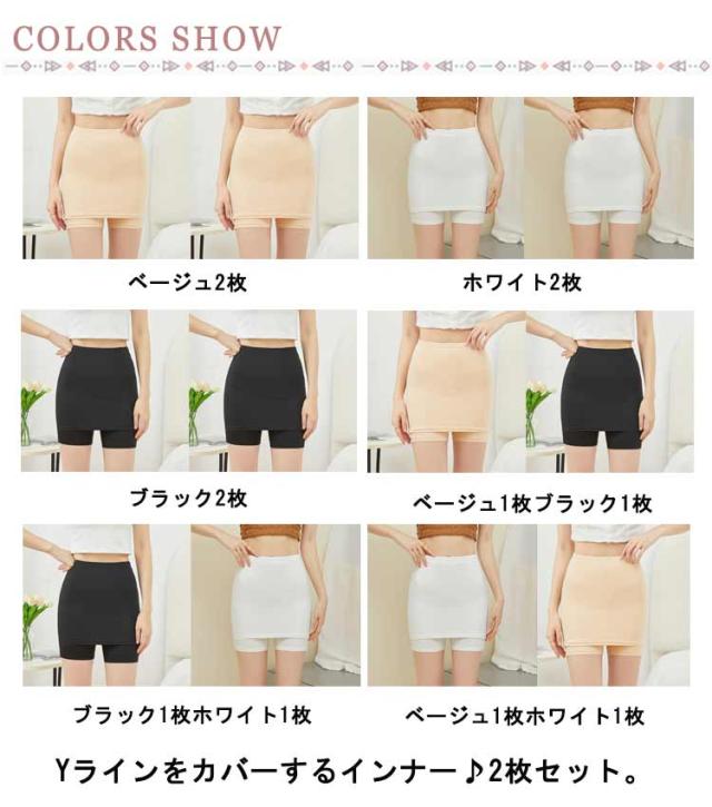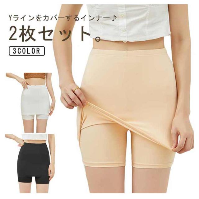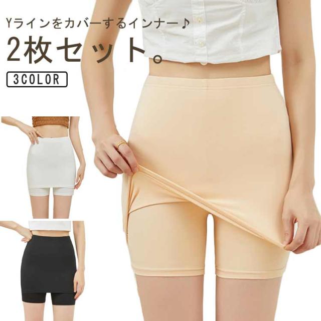 ペチインナー Yラインカバーショーツ 2枚セット ペチコート ペチパンツ スカート インナー 透け防止 張り付き解消 ベージュ Yラインカバーパンツ 2枚セット ペチショーツ レディース ブラック ホワイト 送料無料