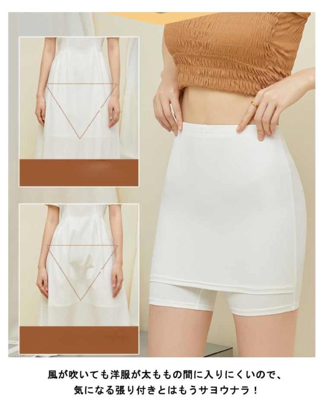 | Yラインをカバーするインナー♪2枚セット。 スカート部分を長めにすることでYラインをしっかりカバー。 風が吹いても洋服が太ももの間に入りにくいので、気になる張り付きとはもうサヨウナラ! 伸縮性抜群の生地なので、1日中着用していてもストレスフリー。 通気性に優れた素材でオールシーズン使えるのも嬉しい◎ | |