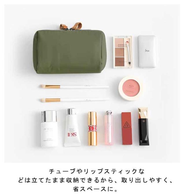 | ガバッと大きく開ける自立可能のコスメポーチ。 高密度撥水ナイロンで、軽くて丈夫!コンパクトなのにしっかりした収納力で使いやすい化粧ポーチ。 チューブやリップスティックなどは立てたまま収納できるから、取り出しやすく、省スペースに。 ダブルファスナーで左右どちらからも開けやすく、スクエアーデザインなので隅々まで小物が入ります。 仕分けポケットが4個あり、ポーチの中で無くしてしまいがちなアイテムもスッキリ収まり、必要なものだけサッと取り出せるから探す手間もなくなりメイクの時間も短縮できます。 お出かけ、オフィス、旅行にも、見た目もシンプルで使いやすく、様々なシーンでも活躍してくれます。 | |
