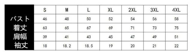 | サイズについての説明 | S M L XL 2XL 3XL 4XL サイズ:写真通り ※上記サイズは平置き実寸になります。サイズ表の実寸法は商品によって1-3cm程度の誤差がある場合がございます。 |