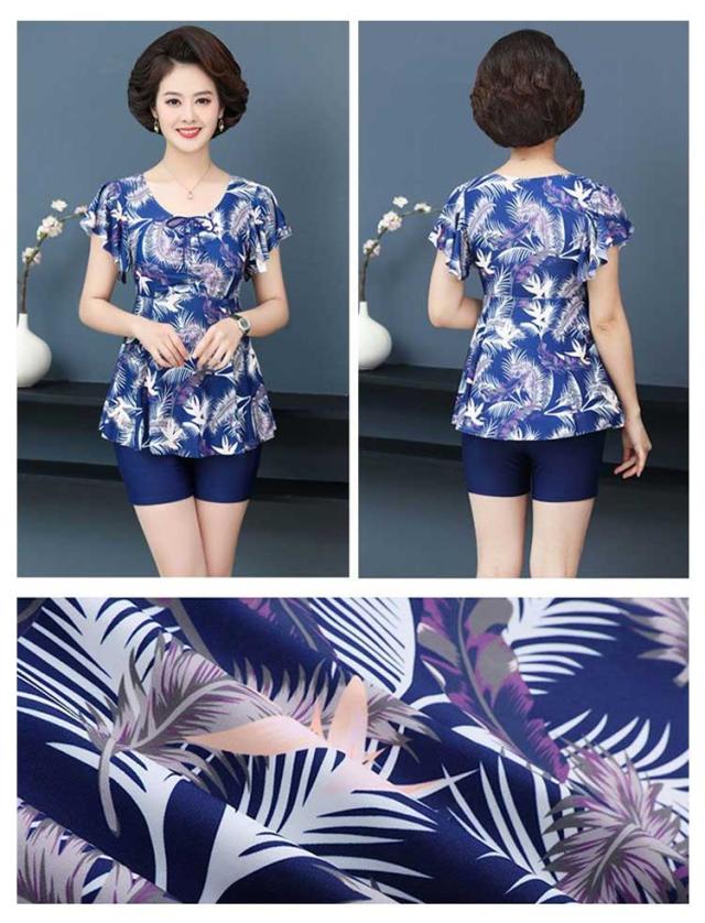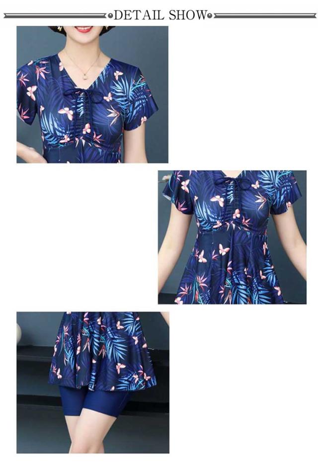 水着 ワンピース ショートパンツ シニア セット レディース セパレート 体型カバー おしゃれ スイムウェア UVカット ママ水着 保守 中高年 温泉 お母さん 海 ブルー 温泉 着痩せ 露出控えめ スイムキャップ