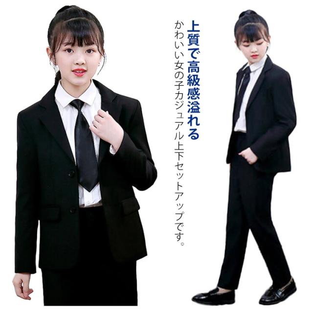 入学式 子供 卒業 スーツ 3点セット パンツスーツ ジャケット+シャツ+パンツ+ネクタイセット ネクタイ付 卒業式 女の子 子供 フォーマル スーツ セットアップ ジュニア 子供服 結婚式 発表会 入学式