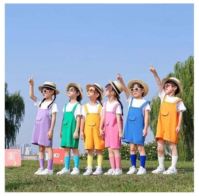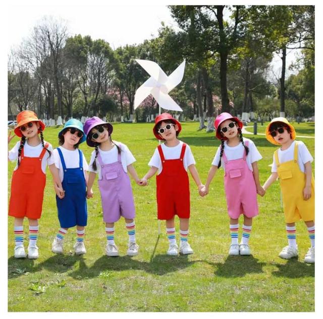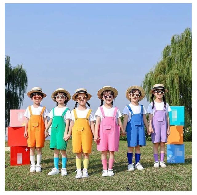 カラフル ダンス衣装 サロペットパンツ 韓国子供服 キッズ 男の子 幼稚園 サロペット 保育園 操服 カラーパンツ 演出服 チーム揃い キッズ 団体服 女の子 応援団 発表会 卒園式 演出服 応援団 ショートパンツ 短パン