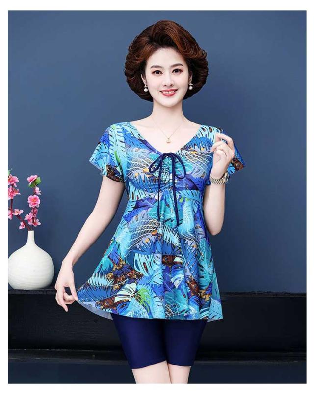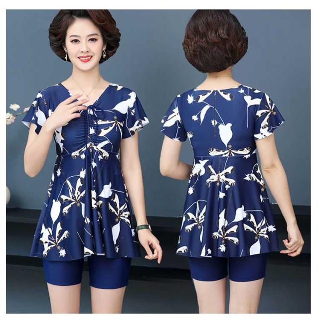 水着 ショートパンツ セット ママ水着 ワンピース UVカット スイムウェア スイムキャップ シニア 体型カバー 保守 セパレート 水着 中高年 温泉 お母さん 海 ブルー 温泉 着痩せ 露出控えめ おしゃれ