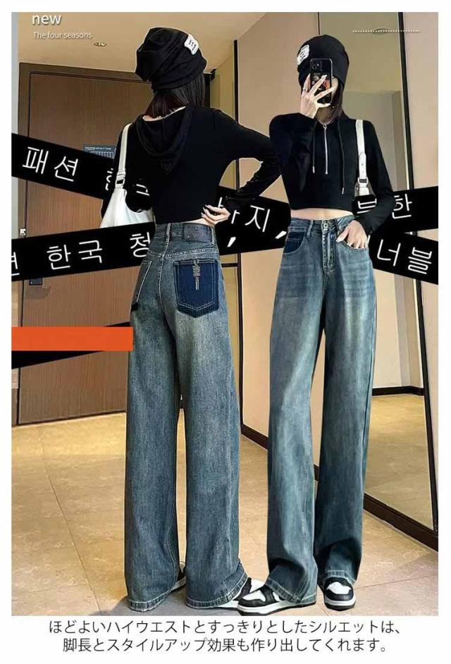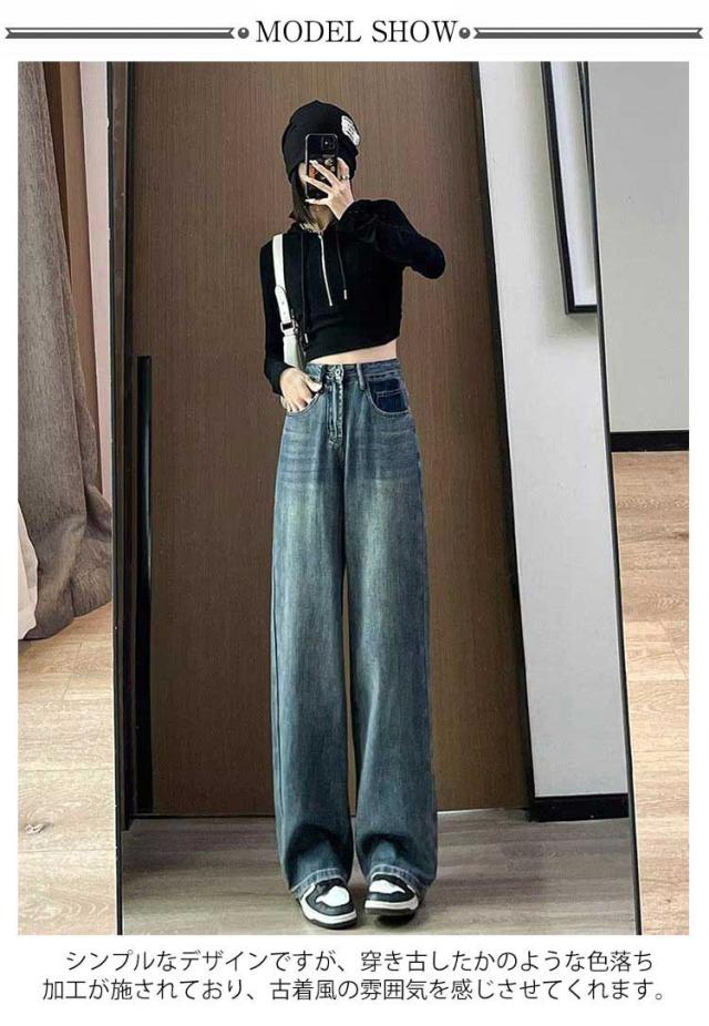 レディース デニム 大きいサイズ ストレート ワイドパンツ ハイウエスト ジーンズ デニムパンツ きれいめ ワイドパンツ 美脚 ゆったり 春夏 ロングパンツ 脚長効果 着痩せ おしゃれ